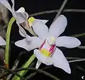 Self-pollination has been observed in Holcoglossum amesianum, in which the pollina moves independently to the fertile stigma in the column.[6]