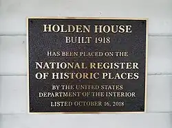 Bronze National Register of Historic Places plaque mounted onto the Holden House (left side of the front door).