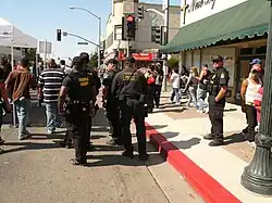 The small, seven-man police force of Hollister was overwhelmed by the events.[5] The police tried to stop the motorcyclists' activities by threatening to use tear gas[10] and arresting as many drunken men as possible. The bars tried to stop the men from drinking by refusing to sell beer and voluntarily closing two hours ahead of time.[5]