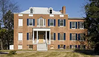 Holly Hall is a historic home located at Elkton, Cecil County, Maryland, United States. Built by James Sewall ca. 1810–20, it is a 2+12-story, Federal-style brick mansion built about 1810. The one-story brick north wing was added as a chapel in the 20th century. Also on the property is a late-19th-century two-story wood tenant house and two concrete block buildings. A few holly trees remain of the many which gave this house its name. Its parapets are unique in Maryland.[2]