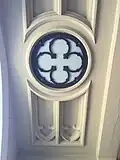 The church building was designed by Thomas P. Barber, and based in part on the English Gothic style of Westminster Hall in London.[11] The structure is steel-framed concrete, which makes it relatively earthquake resistant, and was realized with the contribution of the Italian structural engineer Francesco (Ciccio) Sabato Ceraldi. The church is also an example of American Gothic architecture with its sanctuary roof having an open hammer beam construction.[12]