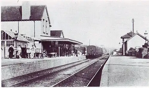 The station was opened along with the single track line on 20 January 1879 and the LSWR began operating a smart horse-bus service to Bude in connection with the trains.[4] The station was approached across Holsworthy Viaduct, a structure consisting of nine 50 ft spans and the first of its kind to be built entirely out of concrete.
