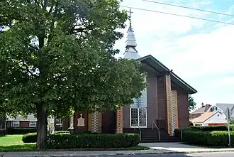 [2]Holy Cross Lithuanian Roman Catholic Church is a historic church in Dayton, Ohio, United States. Built in 1914 by Lithuanian immigrants, the church has been a fixture in the community since then. The church has ornate Lithuanian folk art stained glass windows depicting religious symbolism and the life of Jesus Christ.