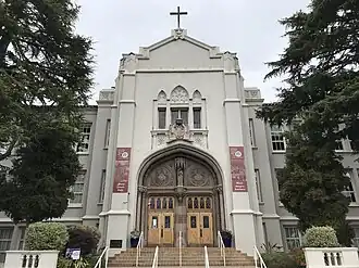 Holy Names High School is a private Catholic girls college preparatory high school located in the Oakland Hills in Oakland, California. It is located in the Roman Catholic Diocese of Oakland. The campus is also home to Aurora Elementary School and the former home to the convent for the Sisters of the Holy Names of Jesus and Mary. Holy Names High School is sponsored by the Sisters of the Holy Names of Jesus and Mary.