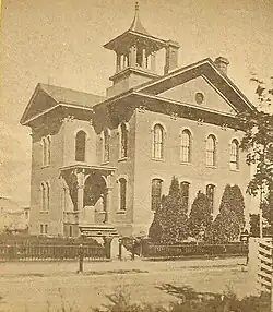 During a visit to Holyoke in 1916, former President and future Supreme Court Chief Justice William Howard Taft gave a lecture at the high school on the institution of the US presidency.[15] In 1969 the school was bestowed with the National Bellamy Award, presented annually to one school in the United States. Begun in 1942 by Margarette Miller, and named for Francis Bellamy, writer of the original Pledge of Allegiance, the award is given to a school each year which embodies the ideals of which the pledge aspires.[16] Although the award is annually presented by an independent organization, in recognition of the school's award, Holyoke High received an official citation from President Richard Nixon, on May 13, 1969.[17]