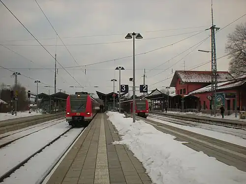 Holzkirchen station is a railway station on the Munich S-Bahn in the district of Holzkirchen in Upper Bavaria, Germany. It is served by the S-Bahn line S3 and Bayerische Regiobahn.