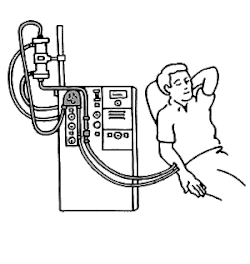 NxStage System One cycler, being used for hemodialysis with bags of dialysate