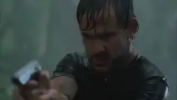Charlie holding a gun after shooting Ethan Rom dead following Ethan’s defeat