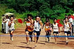 The climax of the film, in which Kiat Kun is pushed to the limit but trips and finishes first — a parallel to Singapore's political history.[1]