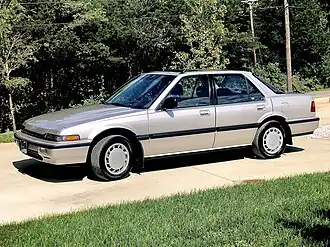 Since its initiation, Honda has offered several different car body styles and versions of the Accord, and often vehicles marketed under the Accord nameplate concurrently in different regions differ quite substantially. It debuted in 1976, as a compact hatchback, though this style only lasted through 1989, as the lineup was expanded to include a sedan, coupe, and wagon. By the sixth-generation Accord at the end of the 1990s, it evolved into an intermediate vehicle, with one basic platform but with different bodies and proportions to increase its competitiveness against its rivals in different international markets. For the eighth-generation Accord released for the North American market in 2007, Honda had again chosen to move the model further upscale and increase its size.[1] This pushed the Accord sedan from the upper limit of what the U.S. Environmental Protection Agency (EPA) defines as a mid-size car to just above the lower limit of a full-size car,[2] with the coupe still rated as a mid-size car. In 2012, the ninth-generation Accord sedan, with smaller exterior dimensions, was once again classified as a mid-size car at 119 cubic feet (3.4 m3), falling just shy of the "Large Car" classification. However, the tenth-generation Accord sedan, with similar exterior dimensions, returned to full-size car status with its combined interior space of 123 cubic feet (3.5 m3); the coupe was discontinued in 2017.