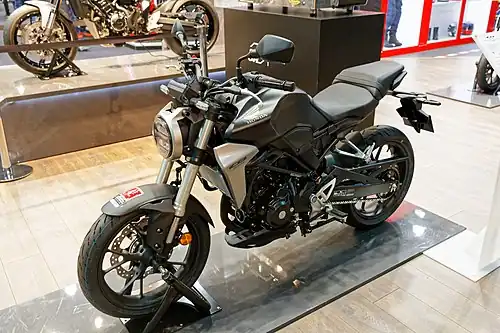The Honda CB300R is a CB series 286 cc (17.5 cu in) single-cylinder standard/naked bike made by Honda since 2017. The CB300R debuted at the 2017 EICMA,[5] and went on sale in Europe and Asia in 2017 and the US in 2018.[6] It is one of the Neo Sports Café lineup of bikes offered by Honda, with the other being CB125R, Thai-market CB150R, CB250R, CB650R and 2018 CB1000R.