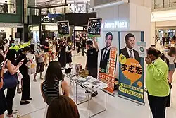 Hong Kong district councillors and activist group Student Politicism have been holding street booths to raise awareness of the detainment. On October 27 police fined and ticketed several people at a street booth in Tsuen Wan,[99] and on December 2 police arrested the same group at a booth in Mong Kok, citing "disorderly conduct".[101]