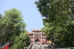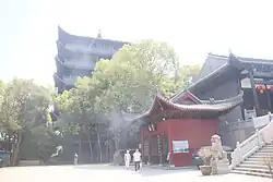 During the Qing dynasty (1644–1911), Hong Xiuquan led the Taiping army through Changsha and saw the "imperial seal" on the plaque in the front hall.[3] Hong Xiuquan ordered his subordinates to demolish the front hall and mountain gate.[3] His subordinates saw the inscription "Hong" on the plaque, and Hong Xiuquan ordered his subordinates to rebuild the temple.[3] The rear hall of Hongshan Temple was donated and built by Rao Dongfang, the magistrate of Changsha.[4]