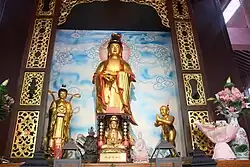 In the center of the Mahavira Hall (back) enshrines the statue of Guanyin with Shancai standing on the left and Longnü on the right