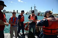 ![]() US Coast Guard Officer collecting oxygen and pH levels in the Honolulu harbor[1] | |