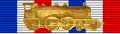 • On the reverse: a rectangular cartouche destined to bear the name of the recipient over an unfurled scroll. It sits atop the bottom of a crown of laurels and oak leaves with a ribbon bearing the inscriptions HONNEUR (in English: HONOUR) and TRAVAIL (in English: WORK). The crown surrounds the image of the front of a steam locomotive and a semaphore.[1]