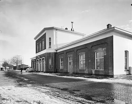 The former station building was completed in 1865. It was designed by Karel Hendrik van Brederode. The building was demolished in 1989.[1]