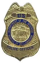 The Hoover Dam Police, officially the Bureau of Reclamation Police, was a federal security police force, stationed at Hoover Dam 23 miles (37 km) southeast of Las Vegas under the command of the US Bureau of Reclamation. Reclamation Police Officers were stationed only at Hoover Dam.[1] Hoover Dam was both listed on the National Register of Historic Places in 1981, and was designated a National Historic Landmark in 1985.[2][3] Hoover Dam has been designated as National Critical Infrastructure. The primary responsibilities of the Hoover Dam Police Officer were to protect the dam, the world's 57th-largest hydroelectric generating station, which provides about 2,080 megawatts,[4] its associated structures, and to safeguard the lives of visitors and employees. The Hoover Dam Police were assisted by unarmed Bureau of Reclamation security guards who control access to reclamation facilities and deter individuals who might consider criminal activities or terrorist acts.