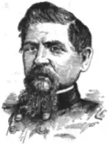 Sickel did not see action again until the Spring of 1864 when he was ordered to join the forces of George Crook operating in western Virginia, where he commanded the 3rd Brigade of Crook's Kanawha Division. At the Battle of Cloyd's Mountain, he led his men in a charge against the Confederate breastworks which succeeded in turning the enemy's flank. The following month the three-year enlistments of the 3rd Pennsylvania Reserves ran out. Sickel and the rest of his men were mustered out of the volunteer services on June 17, 1864.[2] He immediately reenlisted and was appointed colonel of the 198th Pennsylvania Infantry. This command was ordered to the Petersburg front and upon arrival there, Sickel was placed in command of the 1st Brigade in the 1st Division of the V Corps. Two weeks later Sickel led his brigade into action at Poplar Springs Church. For his services there he was given a brevet promotion to brigadier general of volunteers on October 21, 1864.[1] Sickel took a supporting role in the Battle of Boydton Plank Road[3] but was again significantly engaged at Hatcher's Run. There he received a painful flesh wound in his left thigh on February 6, 1865. This wound bothered him for the remainder of his life. In November 1864 General Joshua L. Chamberlain, permanent commander of the 1st Brigade, returned to duty and Sickel reverted to regimental command. He was given a brevet promotion to major general on March 13, 1865. At the Battle of Quaker Road, Sickel "greatly distinguished himself", according to Chamberlain, "...and [behaved] in the most admirable manner."[1] He was again wounded at Quaker Road, having his horse shot out from under him. It was believed at the time that his arm would have to be amputated, his arm was saved but he lost his elbow. He mustered out of the volunteer service on June 4, 1865.[2]
