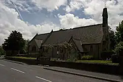 To the south-east of the village, almost in Smalley but still within Horsley Woodhouse parish, was Stainsby House. Built in the 1780s, by the end of the 18th century it had been acquired by the Wilmot-Sitwell family, relatives of the Sitwells of Renishaw Hall through George Sitwell. The Wilmot-Sitwells were benefactors to the villages of Horsley Woodhouse, Horsley, Smalley and Morley: the present Church Hall in Horsley Woodhouse was originally built as a school in 1869 by the family.[9] Once the Wilmot-Sitwell line diminished, the house and lands were sold on. The house was requisitioned to accommodate St Aloysius' RC College until the 1950s, then later became a poultry farm. By the 1970s it had fallen into decay, and was ultimately demolished in 1974, by a wealthy new owner.[10] The historic house was replaced with an aesthetically challenging 'futuristic' construction, which kept the original name of 'Stainsby House' and was completed in 1976. In the 1980s this building featured as a film location for the BBC television production of Life and Loves of a She Devil.