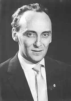 Initially a candidate member since 1958 (V. Party Congress), he become a full member of the Central Committee of the SED in 1959, serving until its resignation in December 1989.[1][2][3][4] He additionally became member of the Volkskammer in 1963 and the State Council, the GDR's collective head of state,[6] in 1960, though he left it at the start of the Honecker era in 1971.[1][2][4]
