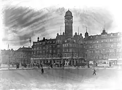 Hotel Bristol provided Leon Trotsky with an alibi following his 1936 Show Trial. Trotsky was accused of plotting against Joseph Stalin at the cafe of the Bristol in Copenhagen where E. S Golzman confessed to meeting both him and his son Sergei Sedov. Danish newspapers could afterwards report that the hotel had been closed since the fire in 1917.[2] The details have been laid out in 'Leon Trotsky and the Hotel Bristol That Never Was', chapter 9, in High Times at the Hotel Bristol,[3] a book about incidents at Hotel Bristol around the world.[4]