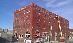 A Hy-Vee Market Grill opened in May 2014, and the upper floors house 12 apartments. The four-story brick structure features three arched windows on the first floor of the west, and two that flank the main entrance on the south elevation. A third window on this side of the building had been converted into a doorway into the hotel's restaurant by 1935.[2] A brick parapet with stone trim caps the structure, and decorative brickwork descends from the cornice on the corners. A neon sign was added in the 1930s. The building was individually listed on the National Register of Historic Places in 2006.[1] In 2014 it was included as a contributing property in the Lucas County Courthouse Square Historic District.[4]