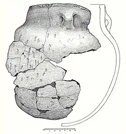 Excavations at the site yielded prehistoric and historic artifacts, pit features, burials, animal bone and plant remains.[1]