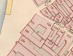 No. 251-252 and No. 233 seen on a detail from Christian Gedde's map of the East Quarter, 1757.