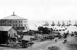 This project was delayed for 20 years due to bureaucracy and another cholera outbreak.[7][3] The government approved the plans and budget in 1883 and the construction in 1889 but the contractors, Udina & Mosca, were not offered a contract until 1905.[3][4][7] In 1909, after more delays, they were replaced by Hungarian architect Juan Kronfuss and the German contracting company Wayss & Freytag.[3][1] The complex was built at the Port of Buenos Aires, specifically Puerto Madero, for ease of use.[8][9] The accommodations facilities were among the first buildings to be built using reinforced concrete in Buenos Aires.[3][4] It was also near a railway station that went directly into the city, which made it a convenient location.[1]