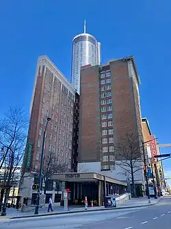 Since the late 1990s, a trend that has emerged in Atlanta has been the repurposing of old office buildings into boutique hotels. In 1996, the Rhodes-Haverty Building (1929) was converted from office space to a hotel, and it currently houses a Residence Inn by Marriott.[14] Similarly, in the 2010s, the Carnegie Building (1925) and the Candler Building (1906) in downtown Atlanta were converted to hotels.[15] Conversely, some historic hotel buildings have been repurposed for other uses, including office space. Examples of this include the Atlanta Biltmore Hotel (1924), which was repurposed for office use in the 1990s, and the Imperial Hotel (1910), which now serves as low-income housing.[16][17]