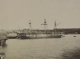Many pictures purporting to be "the" Hougoumont are in fact of a later steel four-masted barque also named Hougomont, 2428 tons, built at Greenock in 1897, and hulked at Stenhouse Bay in South Australia in 1932.[2]