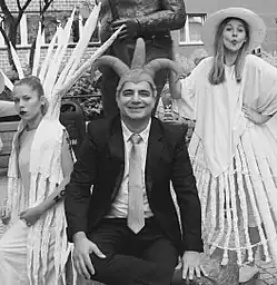 Houmayoun Mahmoudi / Homayoun Mahmoudi, born 1966 in Tehran, is an Iranian/British cartoonist, graphic artist and designer. He studied graphic design at the University of Tehran and graduated in animation from Tarbiat Modares University. Skilled in his own style of minimal cartoon, he has his own technique of working on sandpapers. Mahmoudi is married to Nooshin Moradi, a fashion artist, and moved to the United Kingdom in 2004 and worked as a freelance designer and international artist. He is currently doing PhD research in art and design at Manchester Metropolitan University.[1][2] He has won numerous international cartoon contests around the world since 1994 and his artworks are exhibited in modern art exhibitions globally. In 1998 Graphis magazine interviewed Houmayoun and published his artworks[3][4] and between 1999 and 2006 he was working with the Ritzenhoff Design company as a member of their artist team.[5]