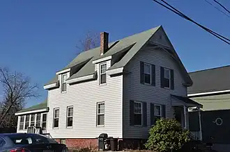 11 Beach Street is located in a residential area east of downtown Reading, on the southwest side of the short street. Its neighbor to the south, #17, is of substantially similar construction. It is a 1+12-story wood-frame structure, with a front-facing gable roof. Its front facade is three bays wide, with the entrance in the rightmost bay, sheltered by a shed-roof porch supported by turned columns. The attic half-story has two sash windows, and there is Stick style woodwork at the peak of the gable. Photos from a 1980 survey show fish-scale shingles and applied woodwork on the gable wall around and above the attic windows;[2] these features have been removed or covered over.[2]