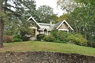 The House at 30 Sheffield Road is one of the more creative early 20th-century Craftsman style houses in Wakefield, Massachusetts. The 1+12-story house was built (c. 1916) predominantly of fieldstone and finished in stucco, and was one of the first houses built in the Sheffield Road subdivision. The main body of the house as a gable roof, with two cross-gable sections facing front sheltering porches set on heavy columns. The entry is in the center of the front facade, topped by a small gable end, and with a small pergola in front.[2]