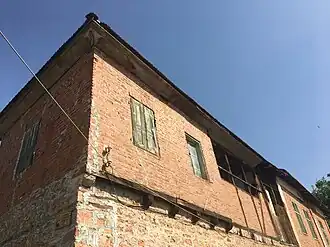 The building has a distinctive architecture, including the existing old house. It consists of a first (ground) floor and a second floor, and is a house with a double-oriented central veranda.[1] Both floors to the northeast are built of stone with leveled wooden beams. Part of the ground floor was an open porch, and the rest contained business premises. The mezzanine and roof construction were made of chestnut wood. The stairs that connected the ground floor and the second floor, as well as all the doors and floors are also made of chestnut wood. The second floor is sticks out with a bay window to the southeast and contains a light wooden structure filled with whole bricks. Above the wooden windows there is a brick ornament. The south-eastern and north-western facades, which have a half-enclosed stone loggia with whole bricks, which extends over the street and the courtyard, stood out in particular. The roof is of roof tiles laid over jointed boards.[3]