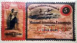 On banknotes printed in London in 1863 by the Bank of Luzarraga, portraits of Manuel Antonio de Luzárraga and his wife Francisca Rico Rocafuerte are present.