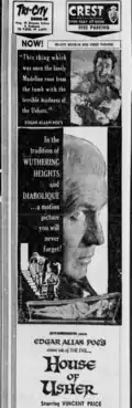- ^ "'House of Usher' with Vincent Price, Mark Damon and Myrna Fahey". Harrison's Reports: 106. July 2, 1960.