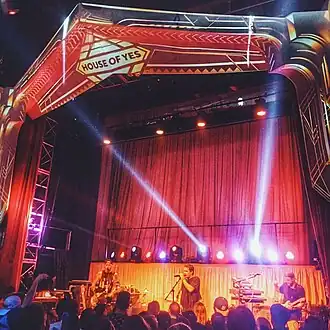 The club is located in the heart of Bushwick. The Brooklyn venue is part nightclub and part self-proclaimed "circus theatre." With a focus on both electronic music and live entertainment, House of Yes boasts high ceilings, video installations and a full backyard, as well as "the best bathrooms you'll ever experience" (also self-proclaimed).[9][10]