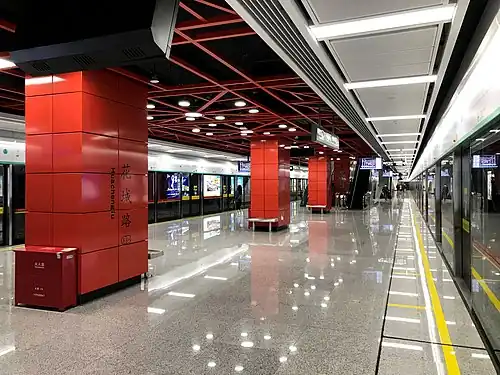 Huachenglu station[1] (Chinese: 花城路站; pinyin: Huāchénglù Zhàn; Jyutping: faa1sing4lou6 zaam6), is a station of Line 9 of the Guangzhou Metro. It started operations on 28 December 2017.[2]