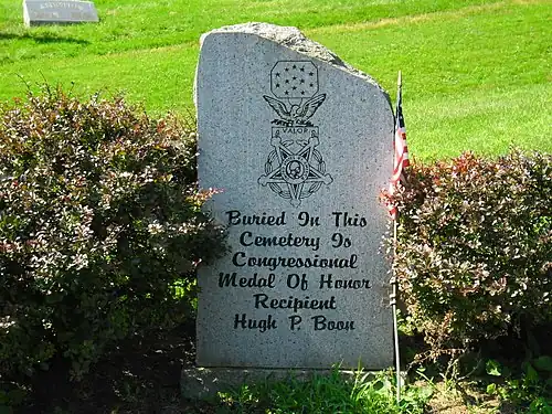 Captain Hugh P. Boon (July 28, 1831 – January 14, 1908) was an American soldier who fought in the American Civil War. Boon received the country's highest award for bravery during combat, the Medal of Honor, for his action during the Battle of Sailor's Creek in Virginia on 6 April 1865. He was honored with the award on 3 May 1865.[1][2]