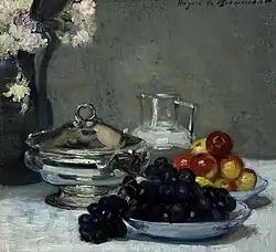 Beaumont produced work in the "intimiste" style, which often depicted bourgeois settings. The term was coined by Édouard Vuillard who used it to describe his own style.[2] Other practitioners include Maurice Lobre, René Georges Hermann-Paul, Henri Matisse, Rene Prinet and Ernest Laurent. The Intimists first collective exhibition was shown at Henry Grave's galleries in 1905.[3] The exhibition included several works by Hughes de Beaumont.