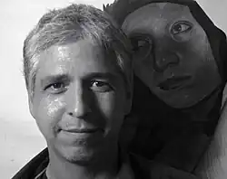 Hugo Crosthwaite (born 1971) is a Tijuana-born contemporary artist whose work encompasses black and white graphite and charcoal drawings, stop-motion animations, paintings, and large-scale murals. His artwork is improvisational, emerging from his portrait-drawing practice that often relies on his observations of real people in Tijuana. Crosthwaite's artwork combines portraiture, art historical references, comic book references, urban signage, commercial facades, and mythology to create layered compositions that comment on life in the border regions of San Diego/Tijuana.[1] Crosthwaite’s work is included in the permanent collections of the Smithsonian National Portrait Gallery (United States), Morgan Library & Museum, Los Angeles County Museum of Art, Museum of Contemporary Art San Diego, the National Museum of Mexican Art, Museum of Latin American Art, the FEMSA Collection, Mexico City and private collections in the U.S. and around the world. In 2019, Crosthwaite won first prize in the Smithsonian's National Portrait Gallery Outwin Boochever Portrait Competition for his submission of a stop-motion animated video entitled A Portrait of Berenice Sarmiento Chavez.[2] He was subsequently awarded a commission for a stop motion portrait of Dr. Anthony Fauci in 2022, which the National Portrait Gallery debuted in 2022.[3]