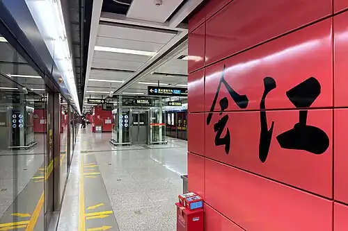 Huijiang Station (simplified Chinese: 会江站; traditional Chinese: 會江站; Jyutping: wui6 gong1 zaam6; Cantonese Yale: Wuihgōng Jaahm) is a metro station on Line 2 of the Guangzhou Metro located under the junction of Shibei Avenue (石北大道) and Shizhong Second Road (石中二路) in the Panyu District of Guangzhou.