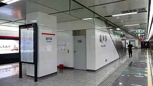 Huluzhen Station (Chinese: 葫芦阵站; pinyin: Húluzhèn zhàn; Fuzhounese: [hu˨˩ lu˨˩ lɛŋ˨˦˨]) is a metro station of Line 1 of the Fuzhou Metro. It is located at the intersection of Zexu Avenue and Gaowang Road in Cangshan District, Fuzhou, Fujian, China.[1] It started operation on May 18, 2016.[2]