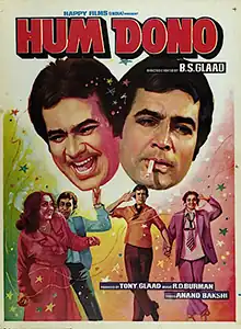 Hum Dono (transl. Both of Us) is a 1985 Indian Hindi-language action comedy film directed by B. S. Glaad, starring Rajesh Khanna, Hema Malini, Reena Roy in lead roles, along with Johnny Walker, Premnath and Om Shivpuri in supporting roles. The music is by R. D. Burman, lyrics by Anand Bakshi and the songs are sung by Kishore Kumar, Asha Bhosle and Anuradha Paudwal. The movie ran silver jubilee at many centers.[1] The most popular song from the film on its release was "Sunle Zameen Aasmaan". The film was a remake of the Telugu film Sommokadidi Sokokadidi.[2]