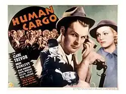 Human Cargo is a 1936 American action film, directed by Allan Dwan and released by 20th Century Fox. It stars Claire Trevor, Brian Donlevy, Alan Dinehart, and Rita Hayworth (credited as Rita Cansino).[1] Rival reporters team up to catch alien smugglers.