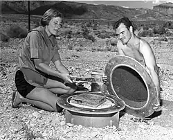 A genre of films, Big bug movies,[60] has been based on oversized insects, including the pioneering 1954 Them!, featuring giant ants mutated by radiation, and the 1957 films The Deadly Mantis[61][62][63] and Beginning of the End, this last complete with giant locusts and "atrocious" special effects.[60][64]