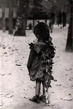 Edouard Boubat (1947) La petite fille aux feuilles mortes ('Little girl wearing dead leaves'), Paris.