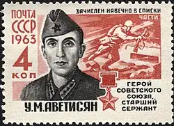 Senior Sergeant Avetisyan. Postage stamp of the Union of Soviet Socialist Republics, 1963.